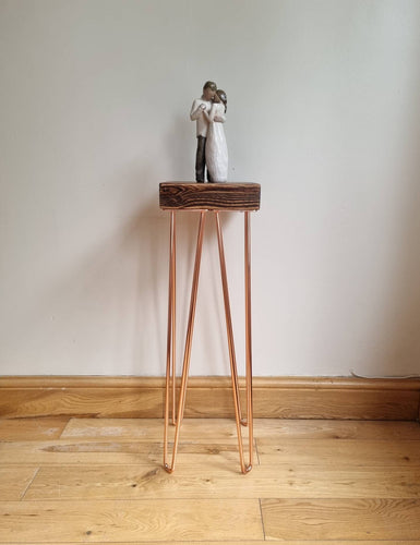 Chunky Rustic Plant Stand/ End Table, with Steel Hairpin Legs