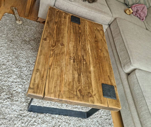 Chunky Rustic Rectangular Coffee Table, with Raw Steel Box Legs| Scandinavian Redwood