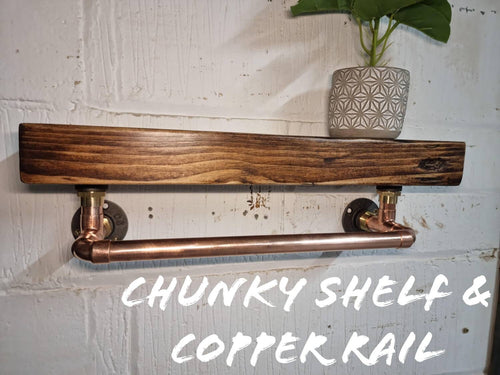 Chunky Rustic Shelf & Copper Pipe Rail | Scandinavian Redwood | Industrial Shelf | Wall Mounted Shelving Unit | Farmhouse Decor | Steampunk