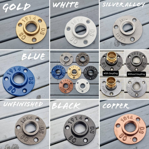 Coloured Cast Iron Aluminium Flanges & Brass Couplings | Industrial Pipe Fitting | Steampunk | Decorative Pipe Hardware Decor | Pipe Connect